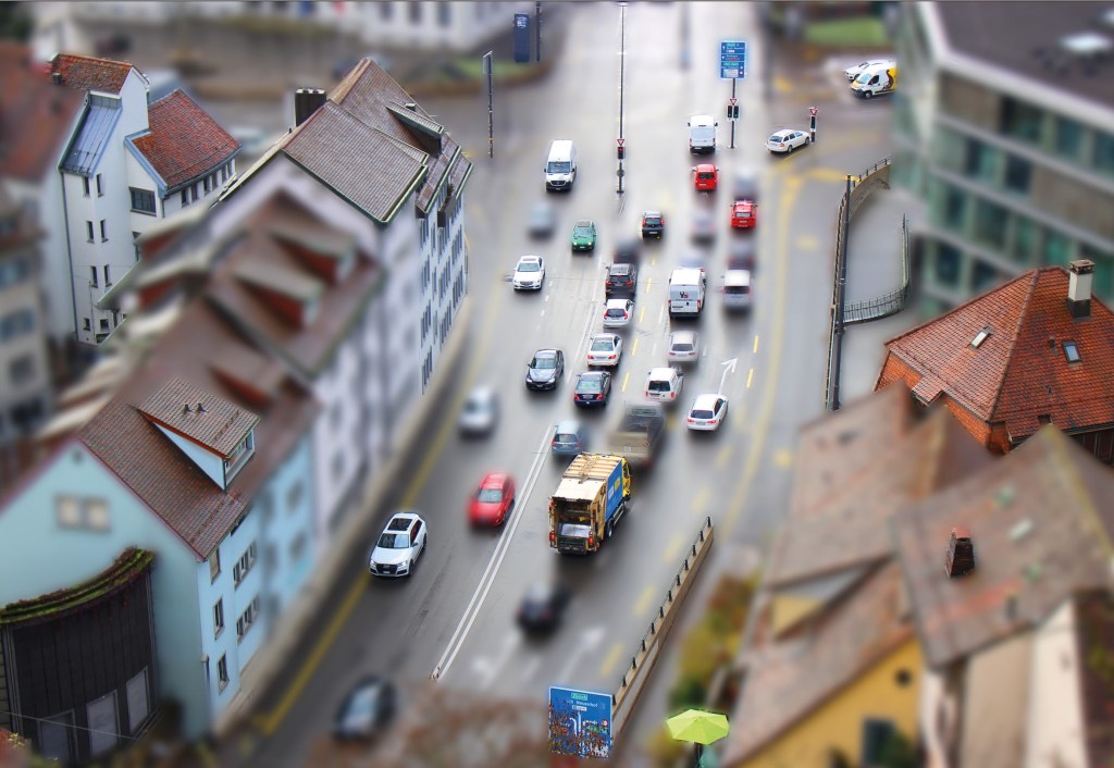 Vogelperspektive fotografieren. Aus der Bildserie soll das beste Bild ausgewählt werden und in Adobe Photoshop bearbeitet werden, um den Tilt Shift-Effekt zu gestalten.