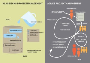 Die Visualisierung der beiden Projektmanagement-Methoden macht deren Unterschiede sichtbar.